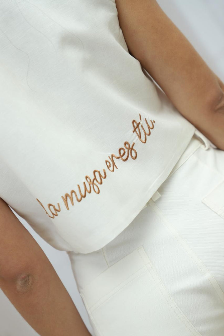 Elaborado en lino 100 % puro, este chaleco rinde homenaje a la elegancia atemporal de Paris, tomando como inspiración su flor insignia, símbolo de sofisticación y belleza. Su diseño estructurado pero ligero lo convierte en una prenda infaltable en tu closet.