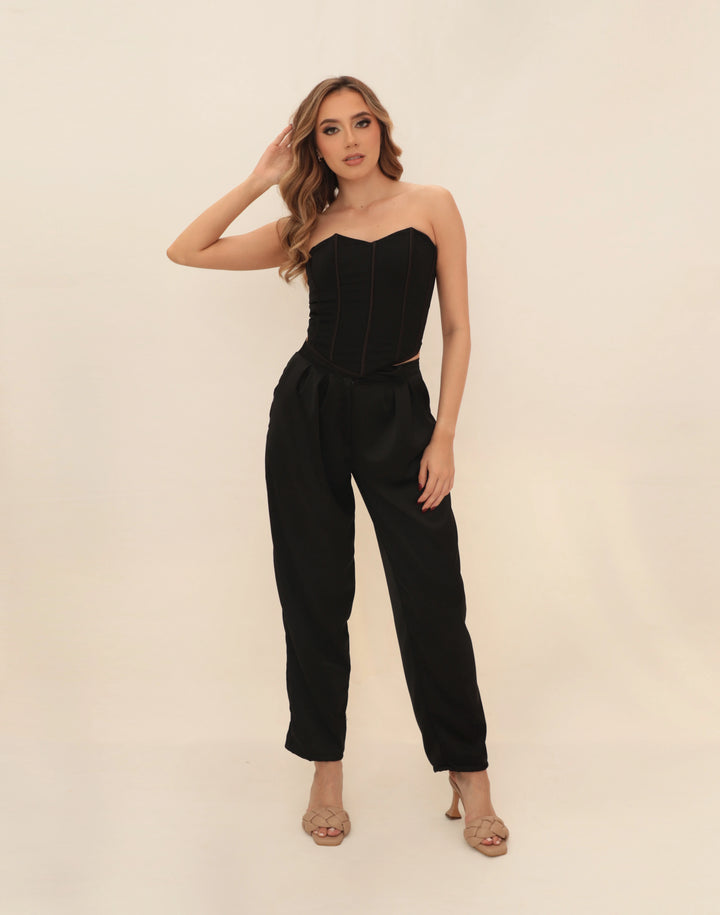 Este pantalón de corte clásico está confeccionado en seda texturizada, aportando fluidez y movimiento a cada paso. Su diseño atemporal y elegante lo convierte en un imprescindible para looks formales o casuales con un toque refinado.